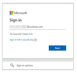 1. เข้าไปที่หน้า Sign in ของ Hotmail/Outlook โดยให้กรอกชื่ออีเมลเข้าไปแล้วคลิกปุ่ม Next